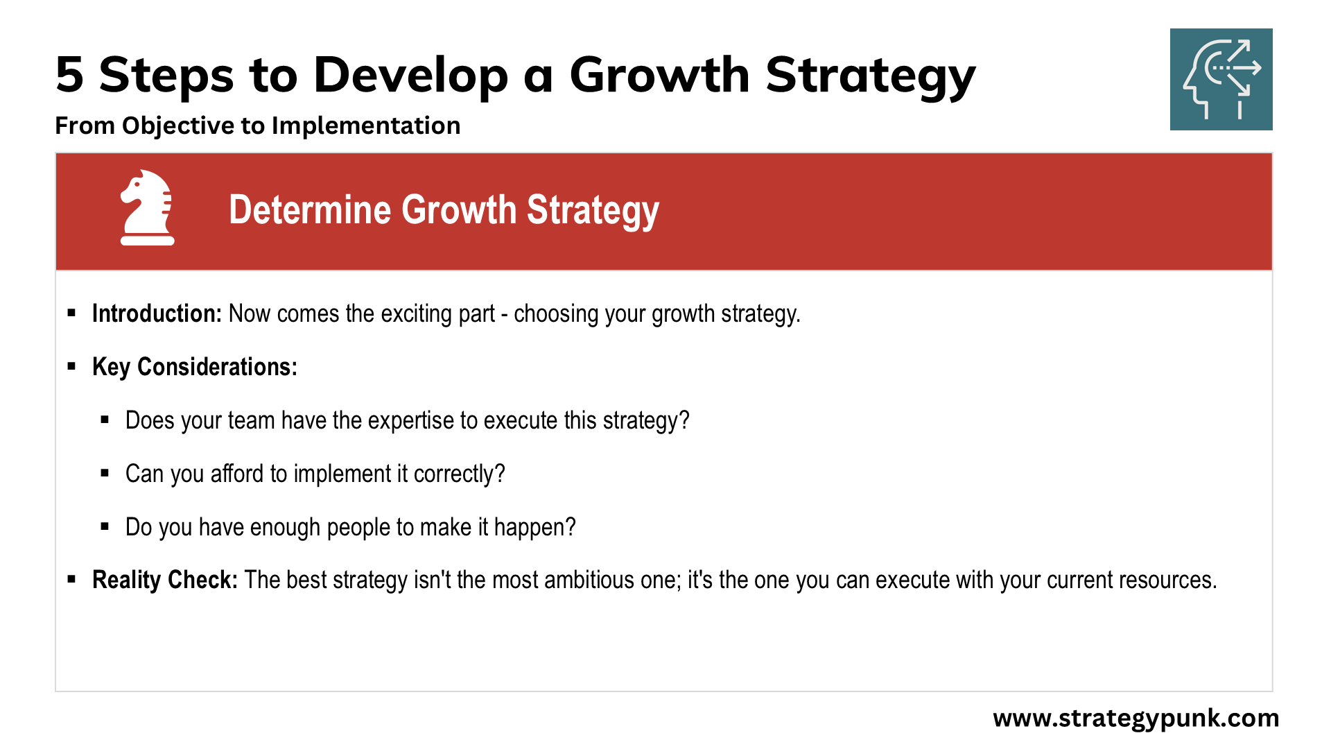 Now comes the exciting part - choosing your growth strategy. But remember, excitement shouldn't cloud your judgment.