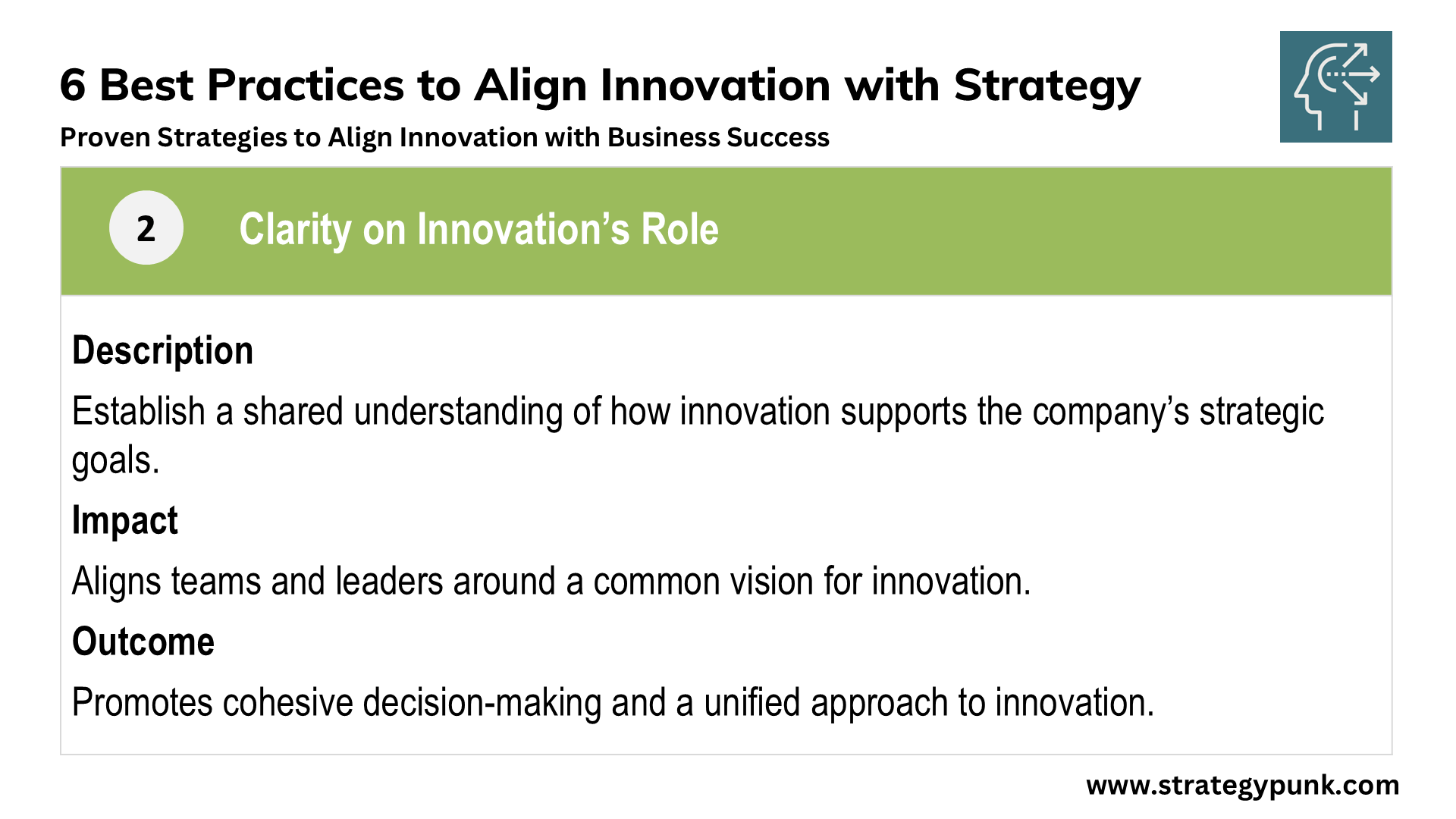 It is crucial to have a shared understanding of innovation's purpose and its alignment with the company's strategic goals. This familiar narrative guides decision-making and promotes a cohesive approach to innovation.
