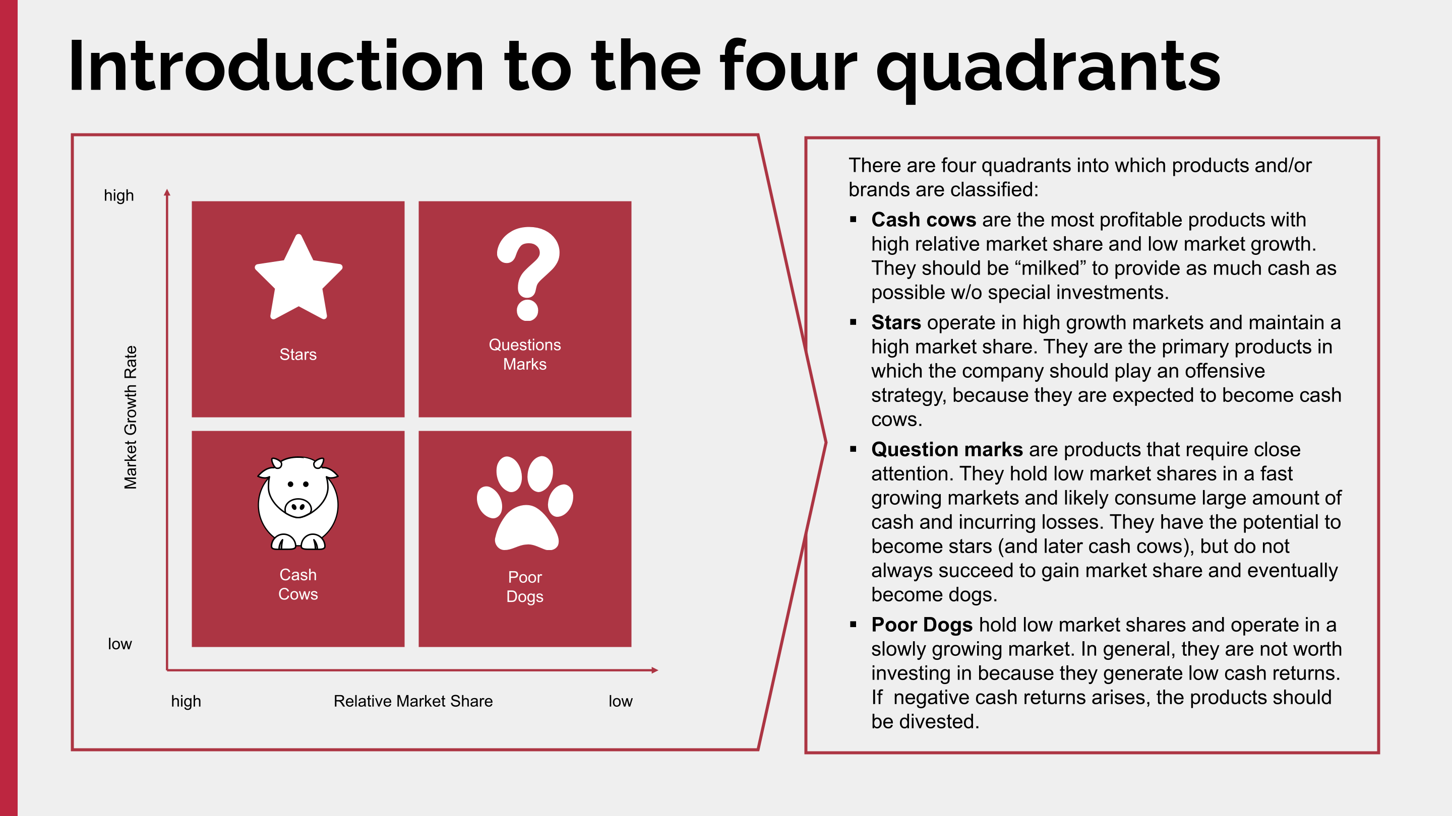 You can look no further than the BCG Matrix Excel template and PDF introduction.