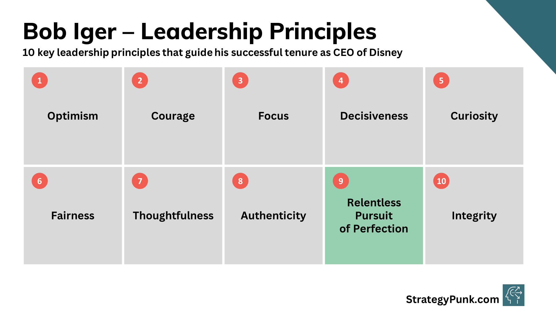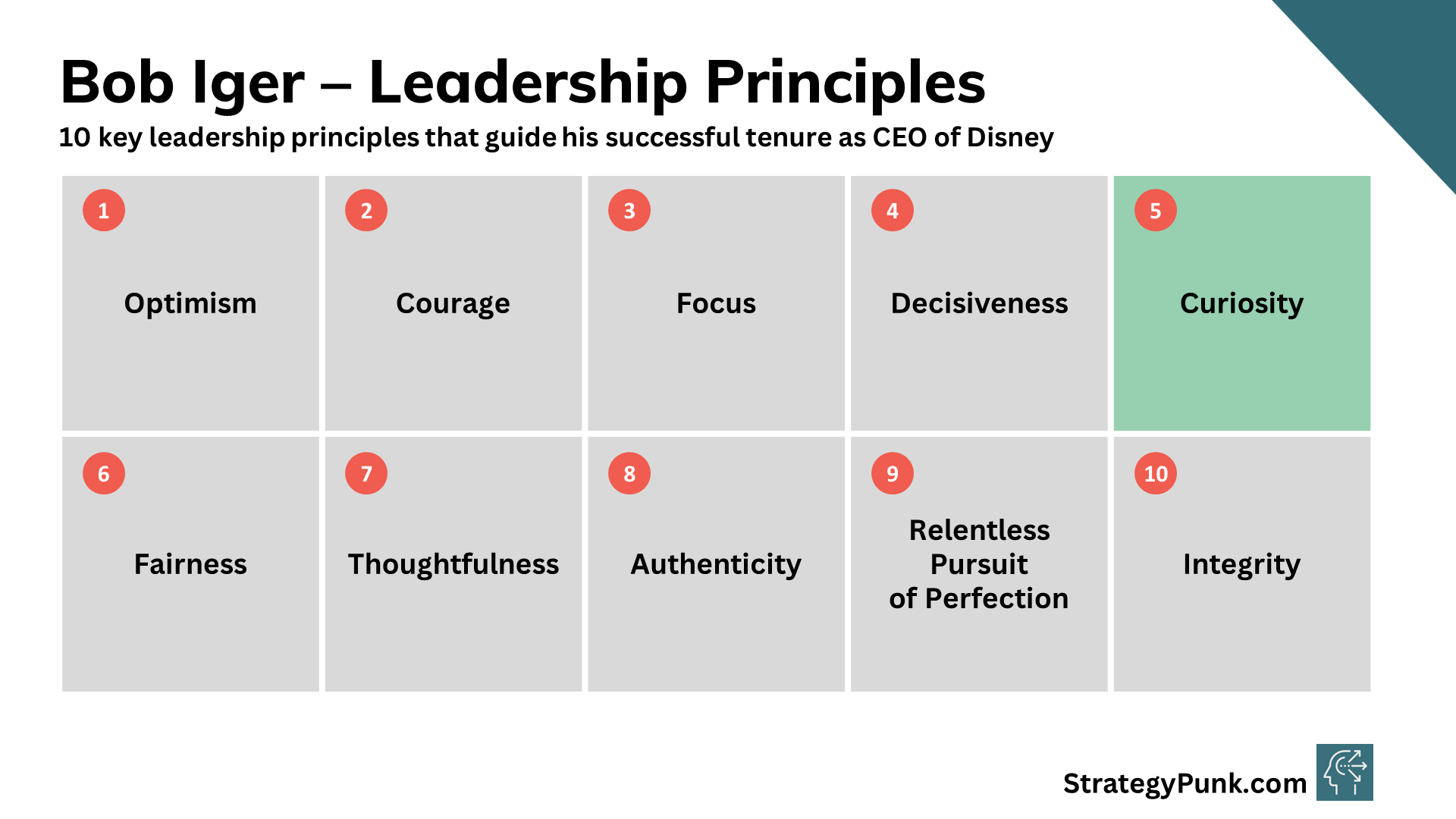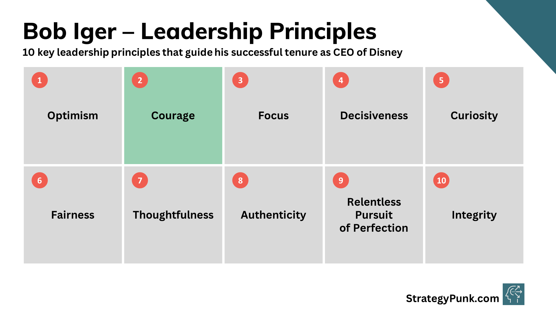 Discover the ten fundamental leadership principles of Bob Iger that defined his transformative era at Disney. Download the PDF guidebook of the 10 Principles.