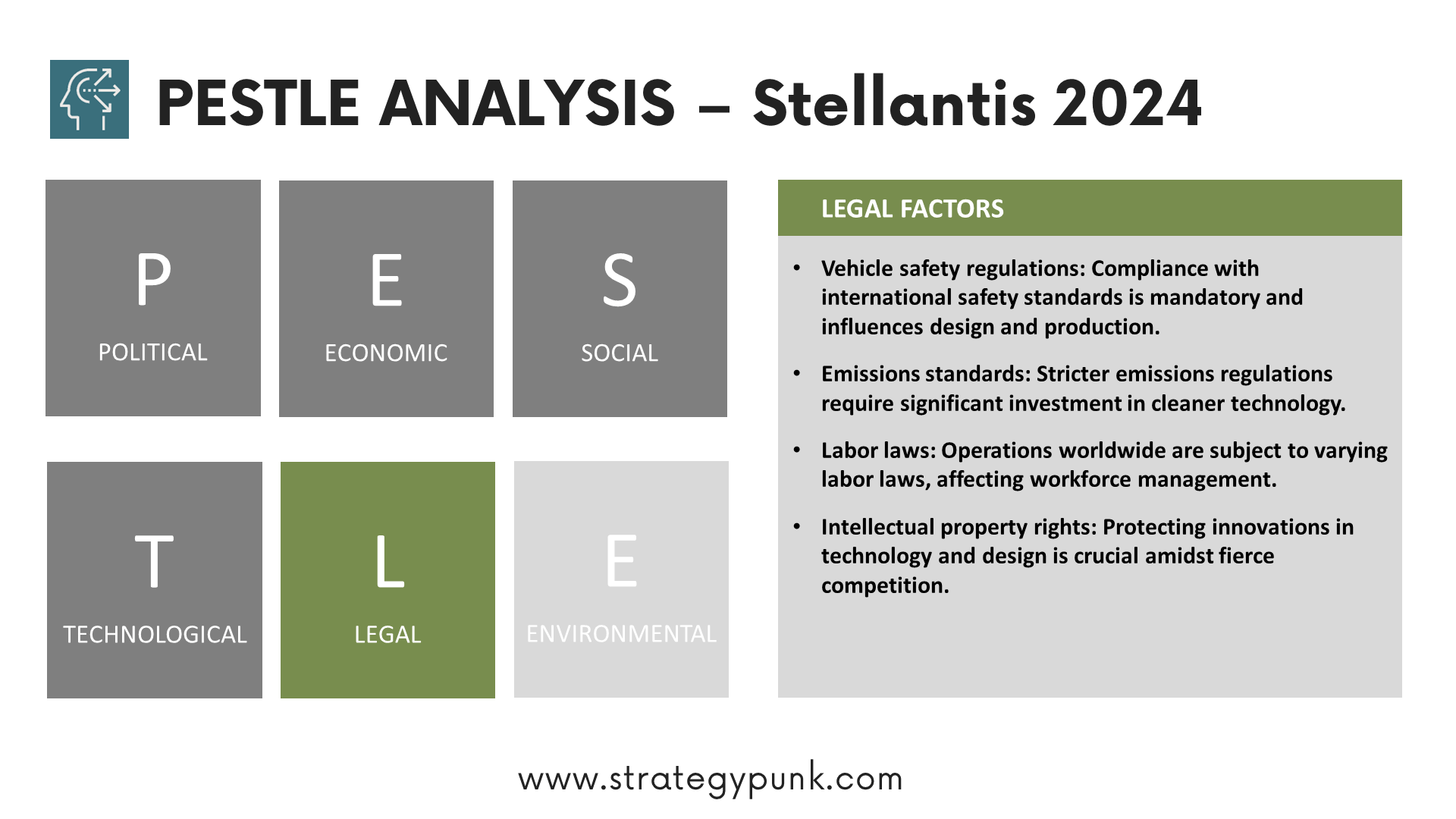 Additionally, Stellantis must comply with intellectual property laws and protect its innovations from infringement. The company has a robust patent portfolio and collaborates with industry partners to safeguard its technological advancements.