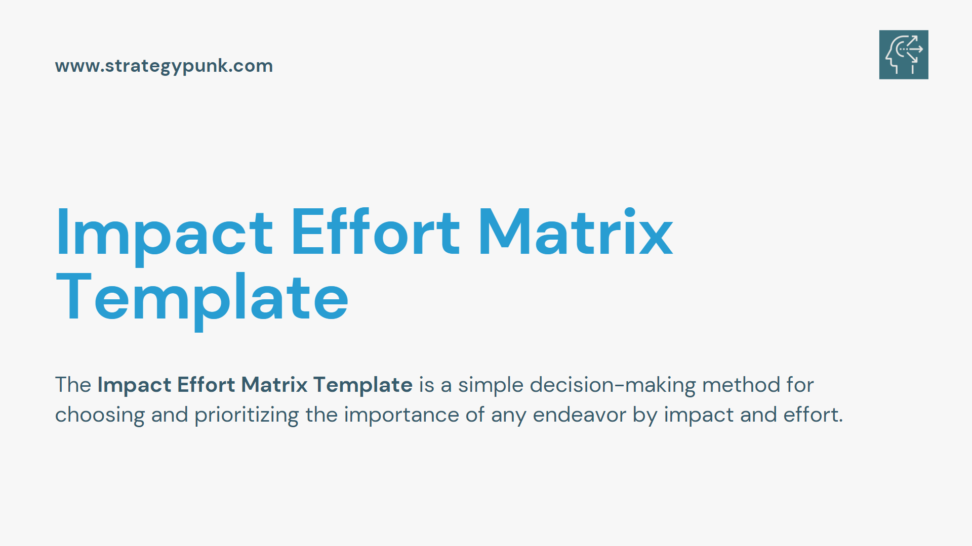 Learn The Truth About Impact Effort Matrix In 60 Seconds (Free Guide & Template). The Impact Effort Matrix is a decision-making tool that evaluates the importance of any endeavor by impact and effort. Free PowerPoint, Google Slides, and PDF Template.