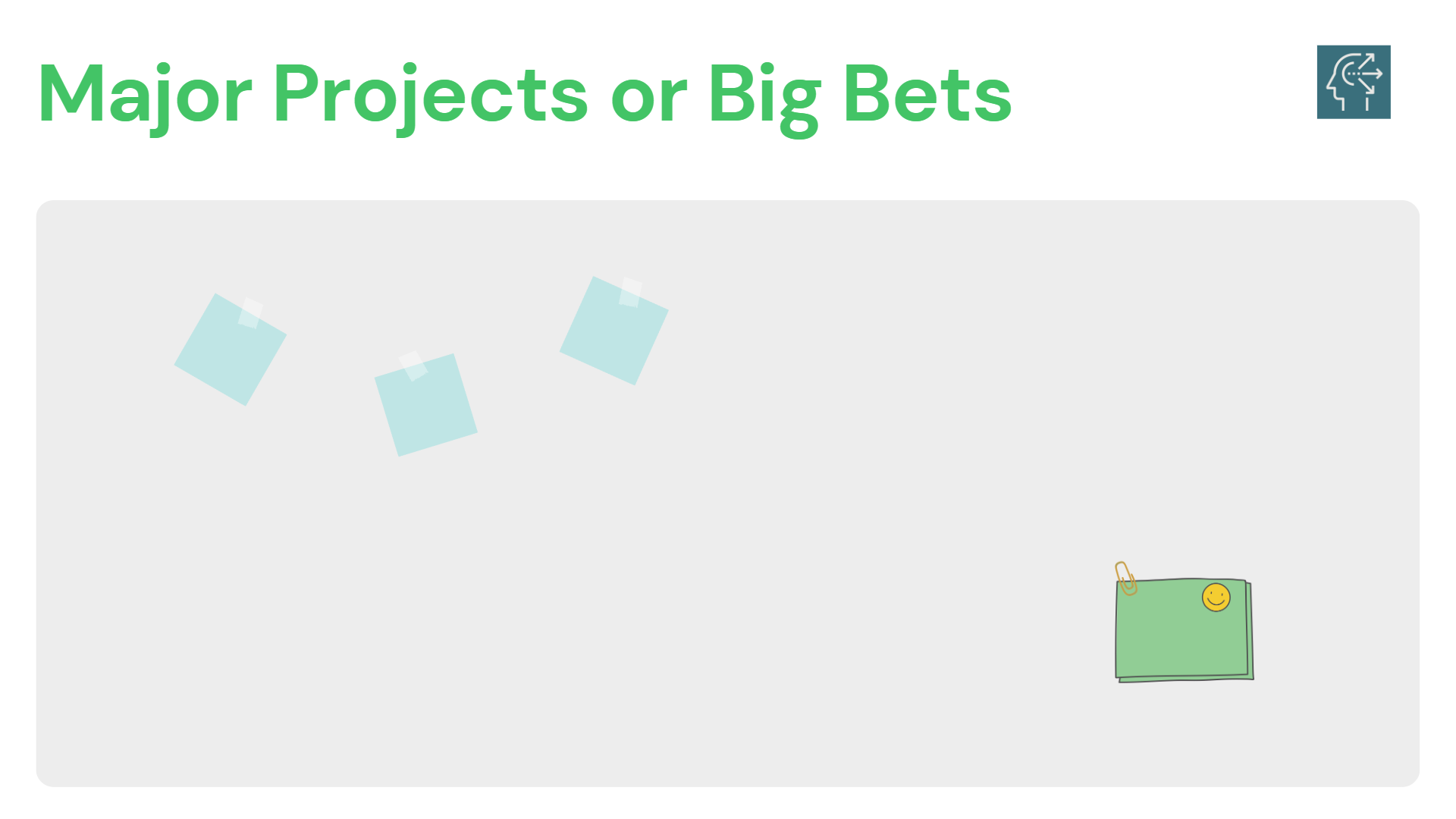 Major Projects or Big Bets require more effort and may take longer, but they can bring big rewards.