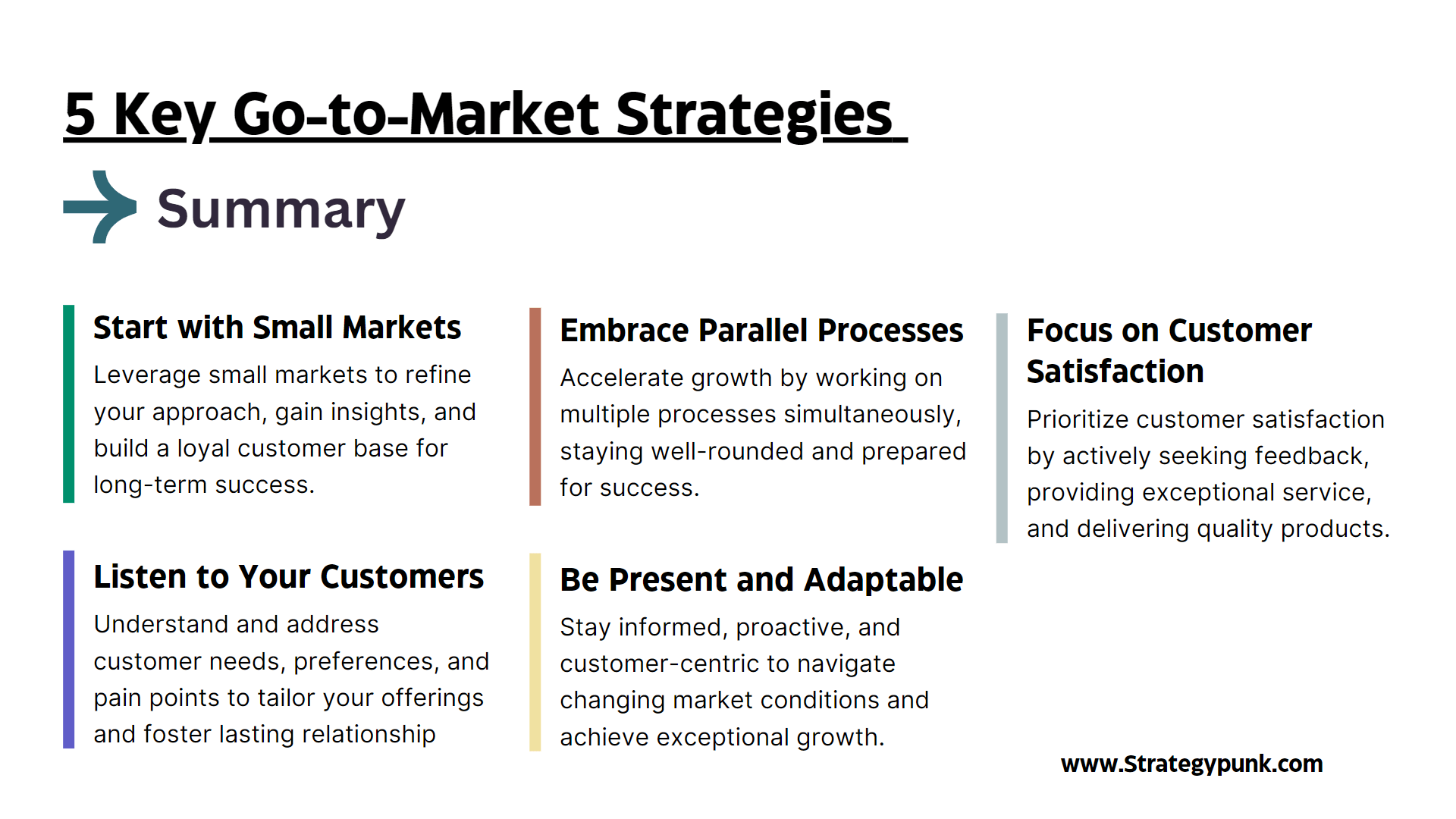 Master the art of exceptional business growth with these five proven go-to-market strategies, from tapping into small markets to staying present and adaptable in an ever-changing landscape.