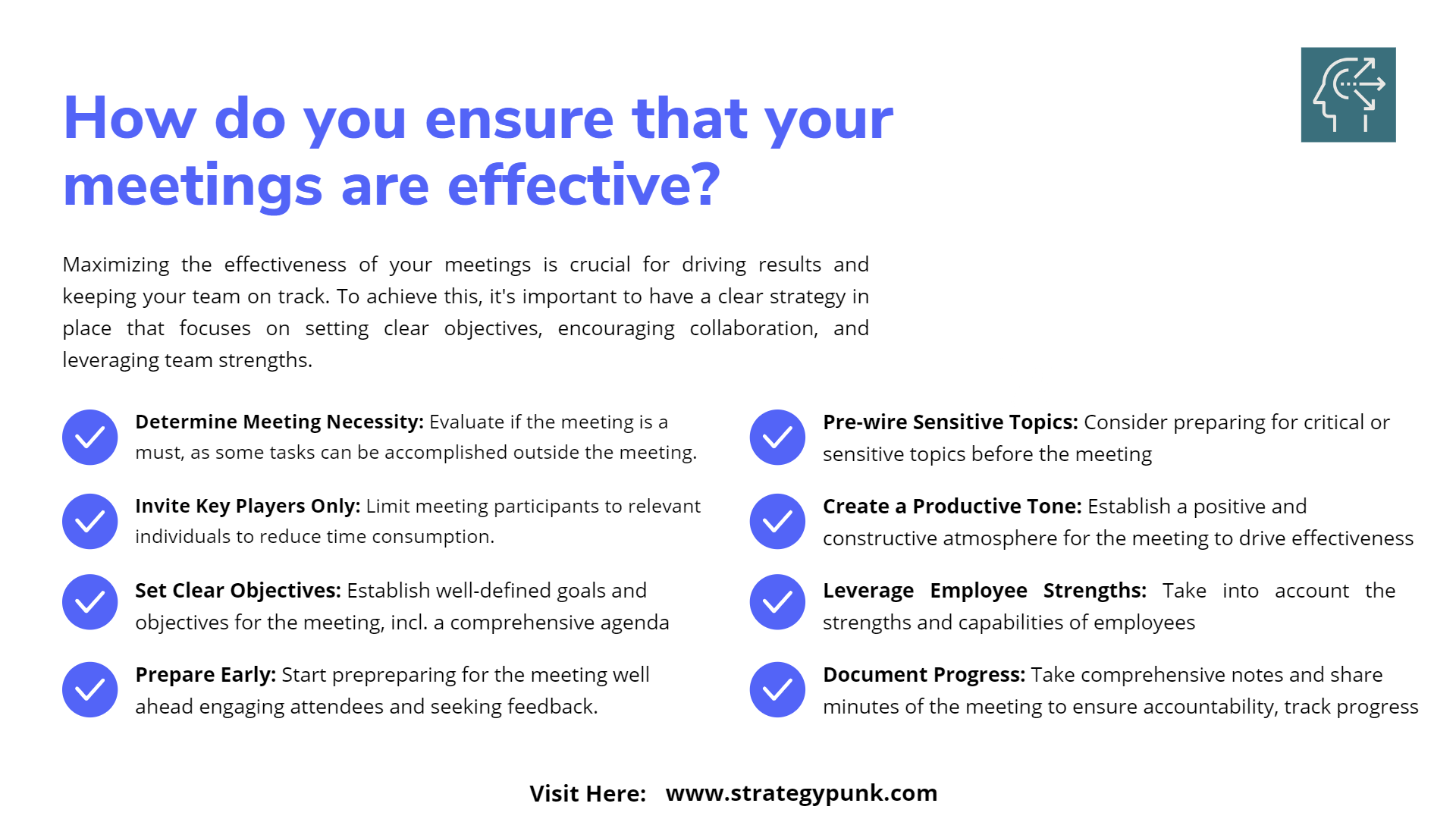 1. Ask the brutal question first: Do we even need this meeting? If you can handle it over Slack or email, cancel the damn thing.