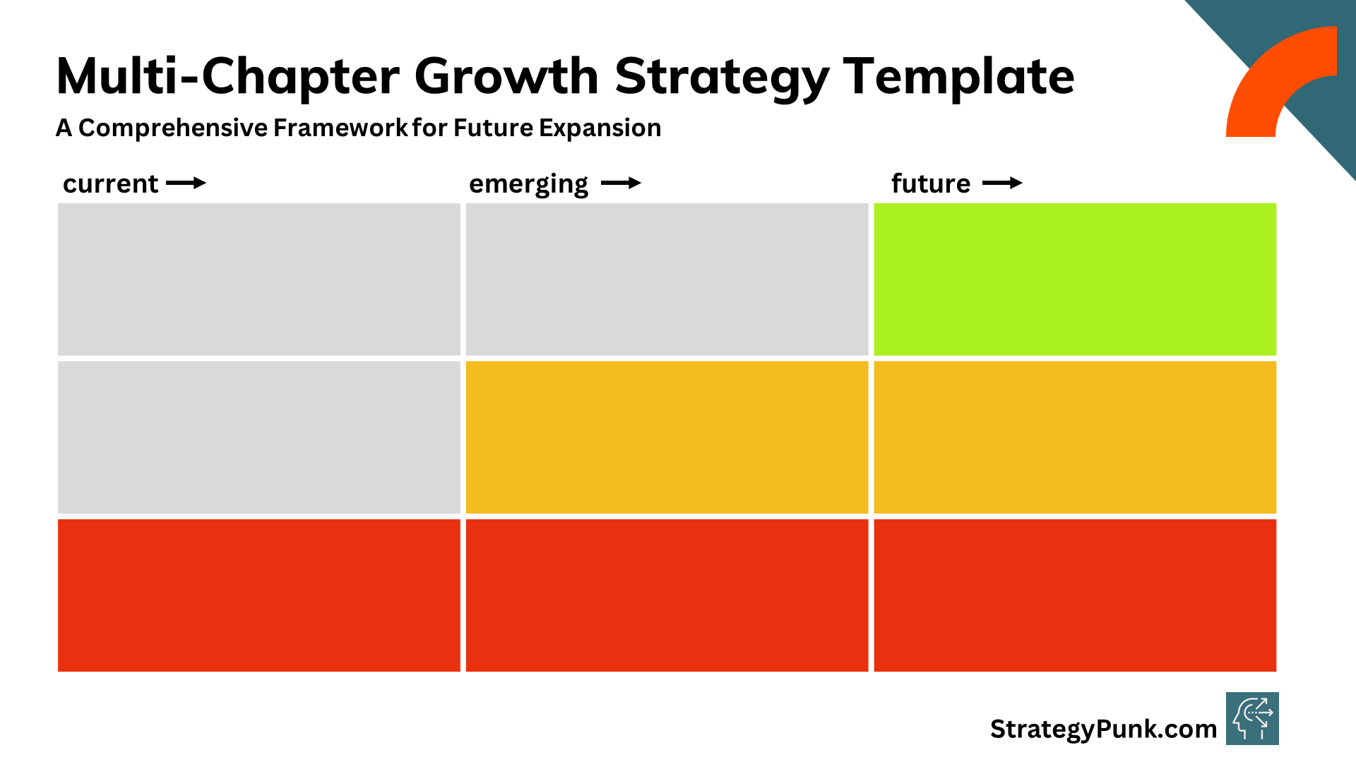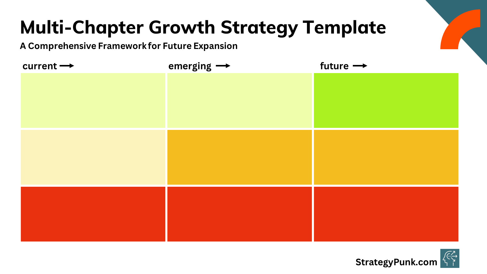 We have created a free PowerPoint template based on the multi-chapter growth strategy to help strategists, young professionals, and business leaders implement this framework effectively.