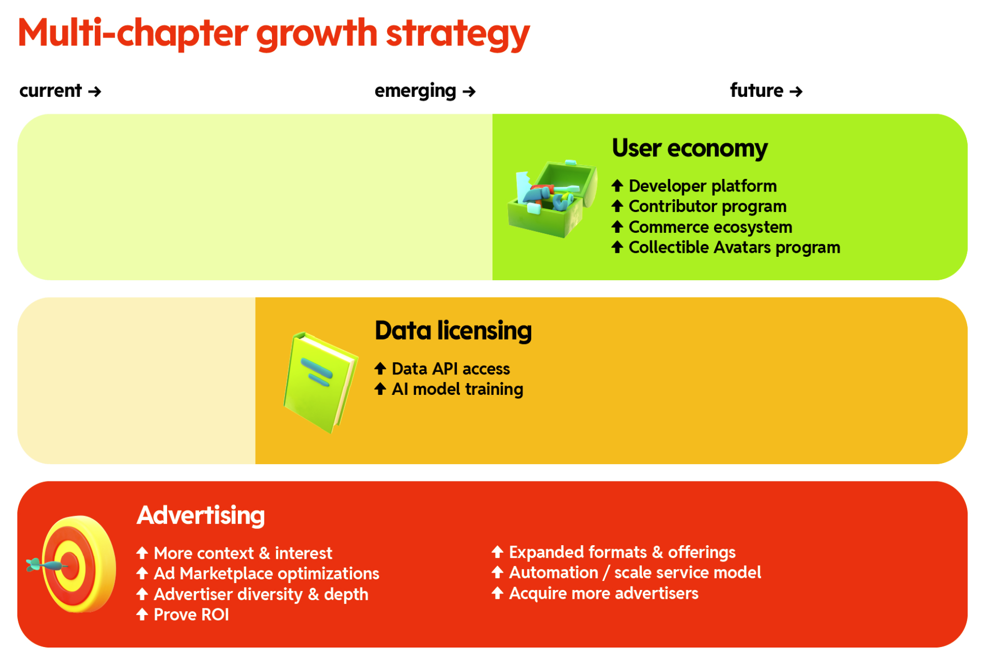 DiscoverReddit's Multi-Chapter Growth Strategy: a phased approach for sustained business growth through User Economy, Data Licensing, and Advertising.