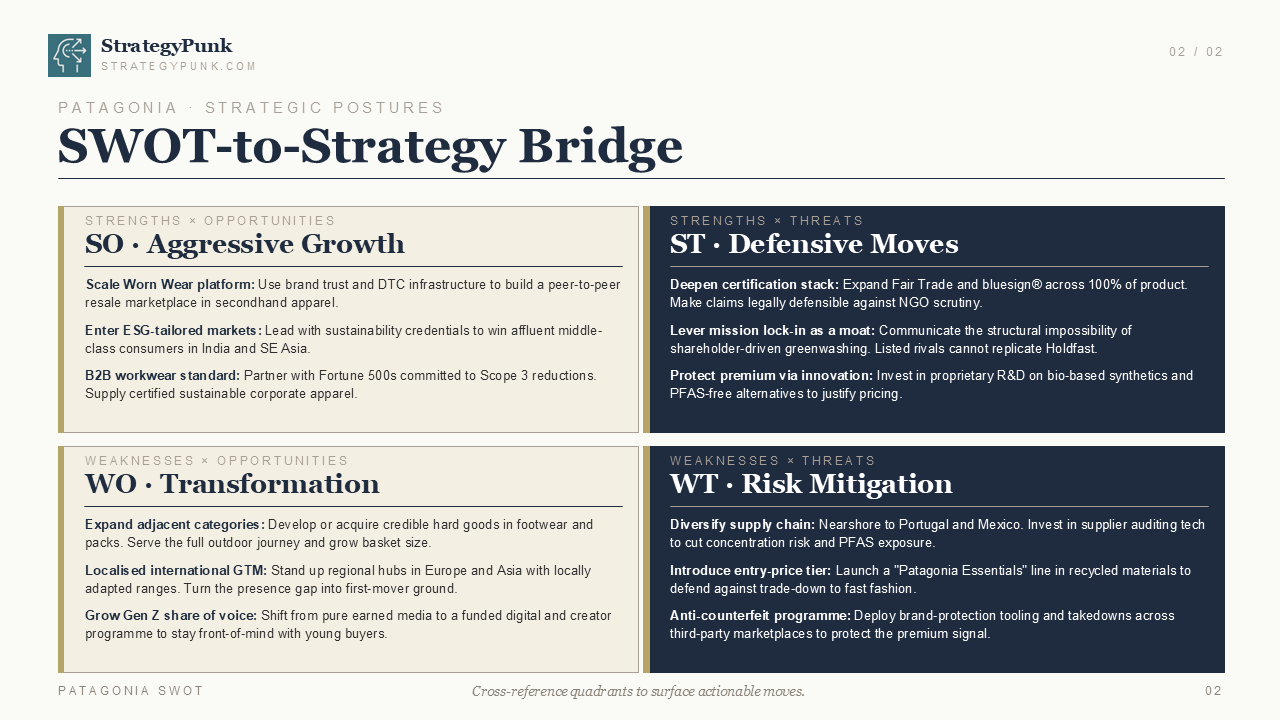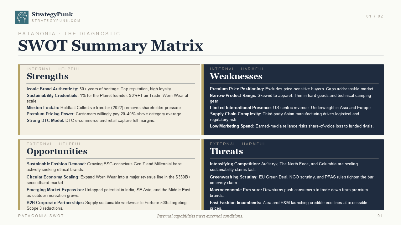Want to dive deeper into the strategic mechanics behind Patagonia's success? Download the full StrategyPunk SWOT and TOWS diagnostic PDF below.