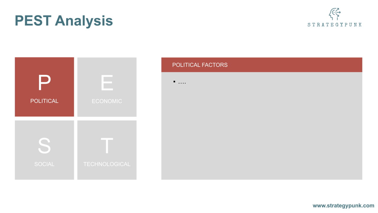 What are the four factors of PEST analysis?