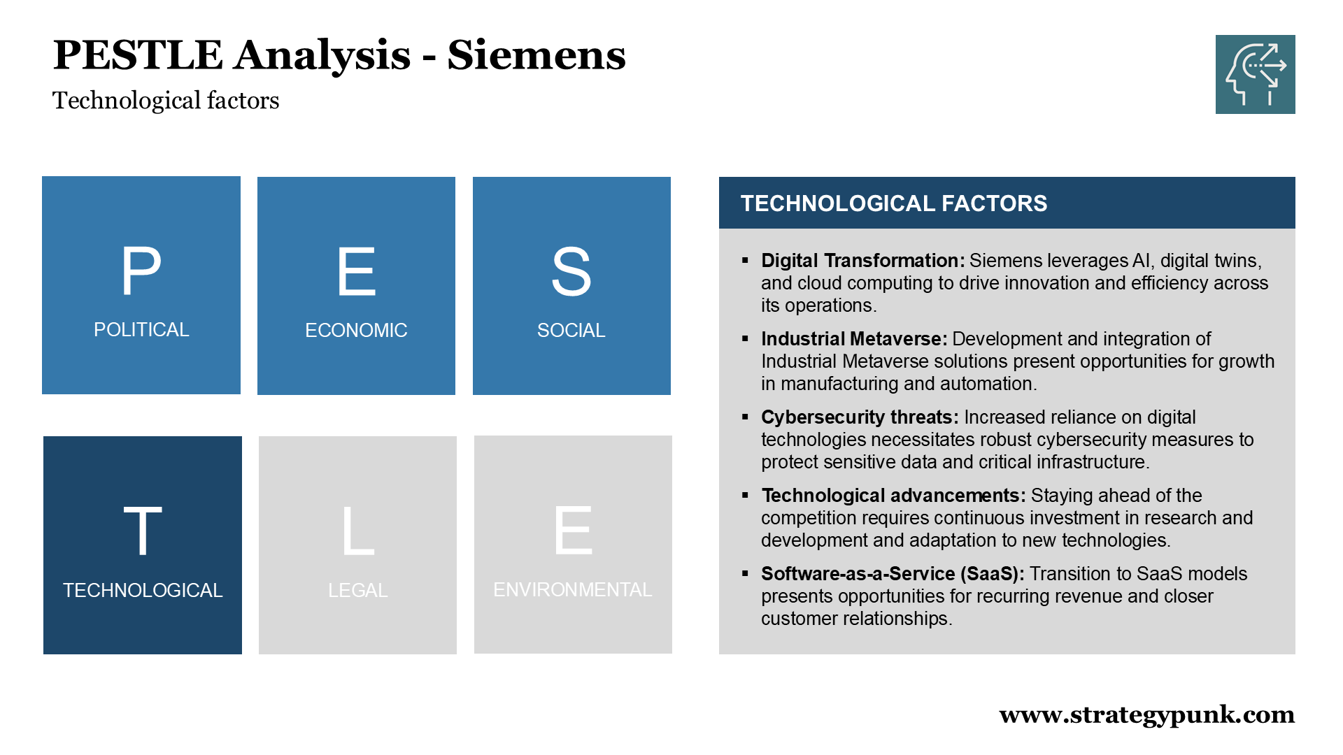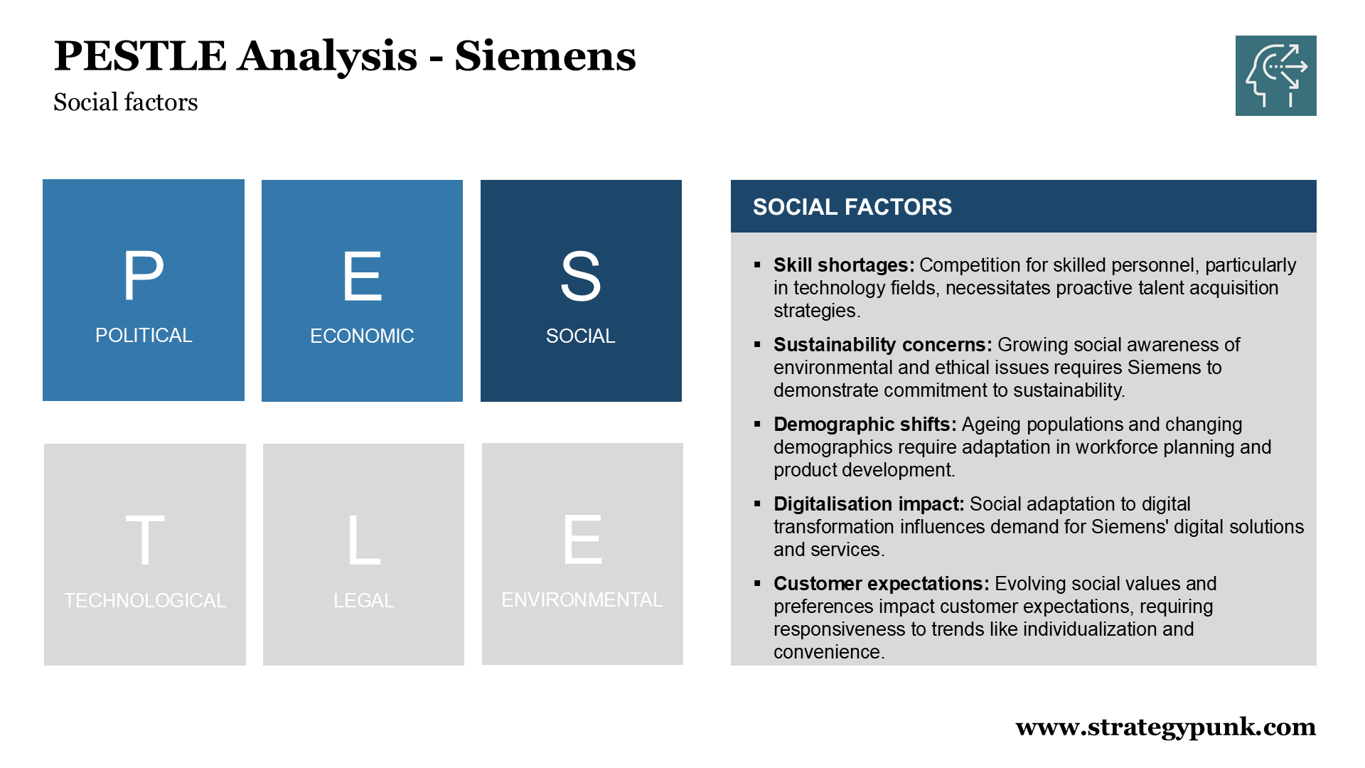- Sustainability concerns: Growing social awareness of environmental and ethical issues requires Siemens to commit to sustainability.