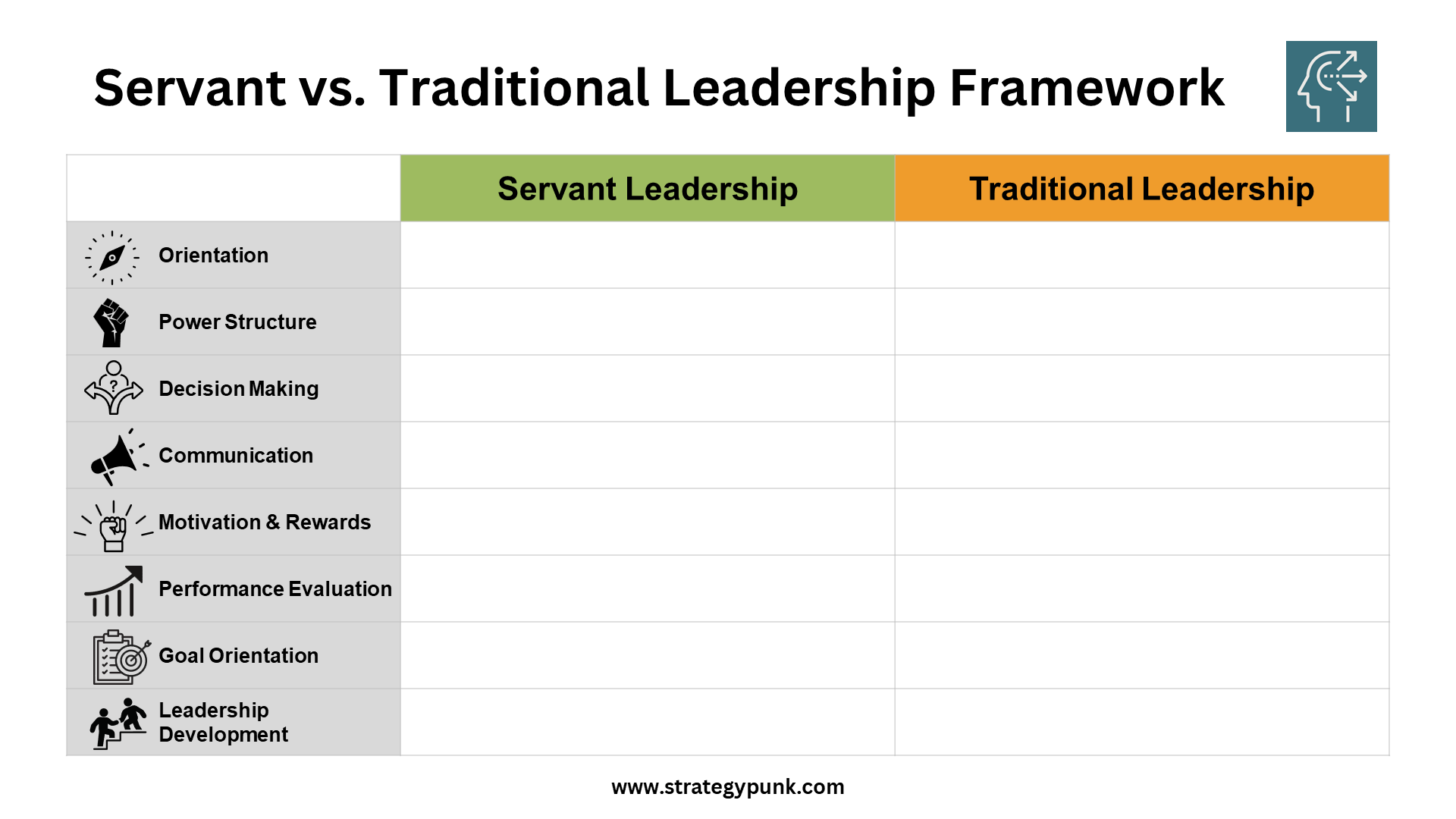 Free PDF and PowerPoint Template: Servant vs. Traditional Leadership Framework