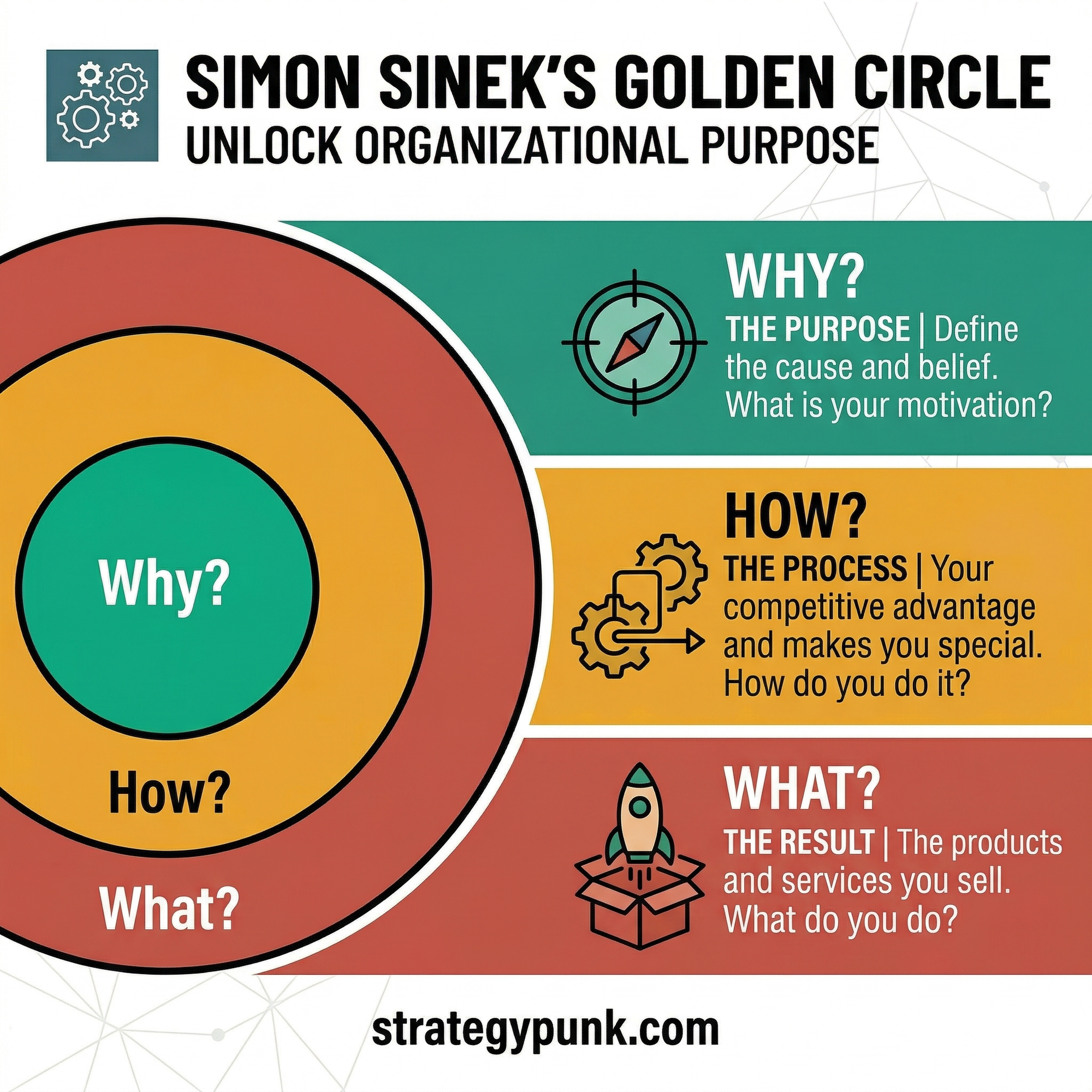 Simon Sinek introduced the Golden Circle in his 2009 TED Talk, which has since crossed 65 million views. The core idea is deceptively simple. Most organizations communicate from the outside in. They start with what they sell, then explain how they do it, and rarely articulate why they exist. The leaders and companies that genuinely inspire people reverse that sequence. They start with WHY.