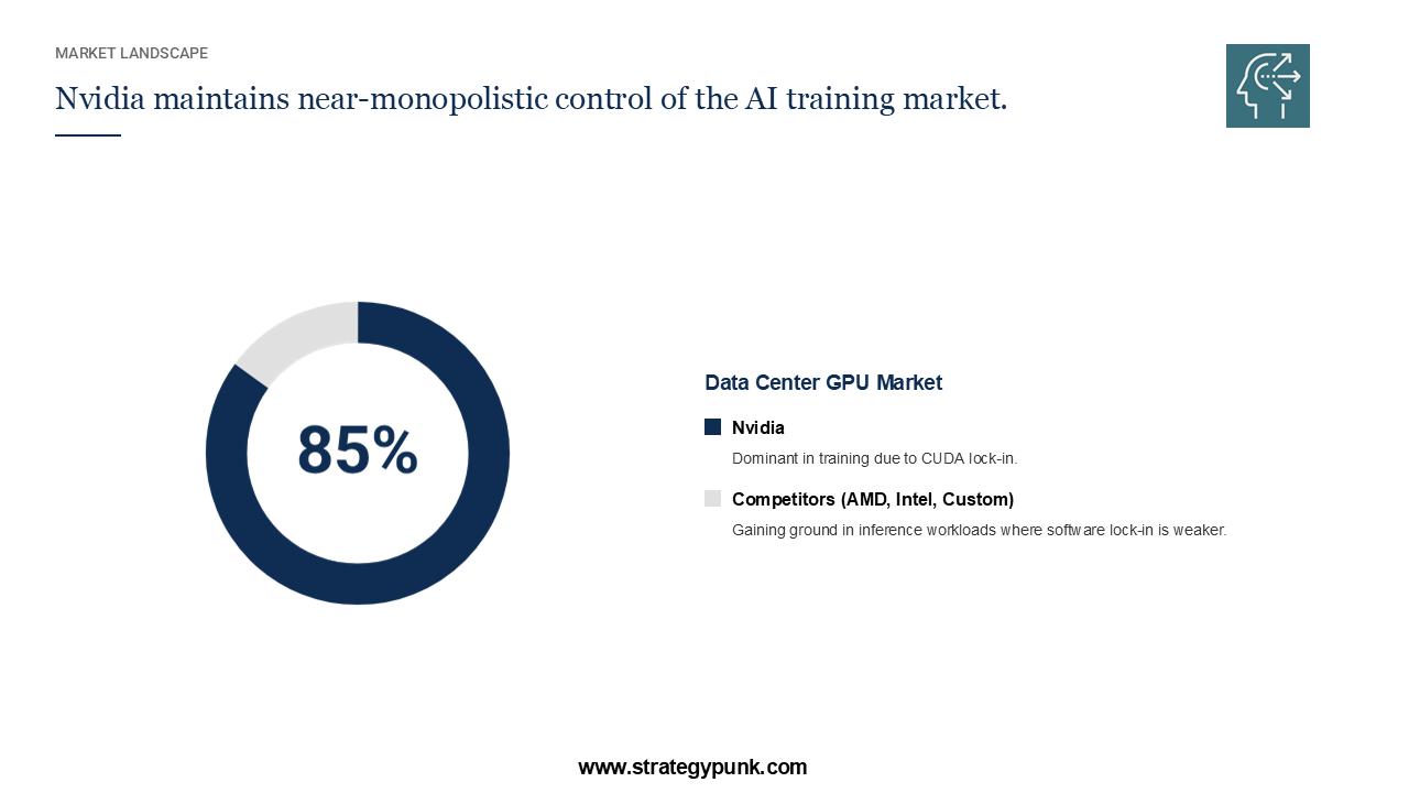 The first is hardware. The H100 and upcoming Blackwell GPUs remain one to two generations ahead of anything AMD or Intel can offer. When companies need raw training power, Nvidia delivers performance that justifies premium pricing.