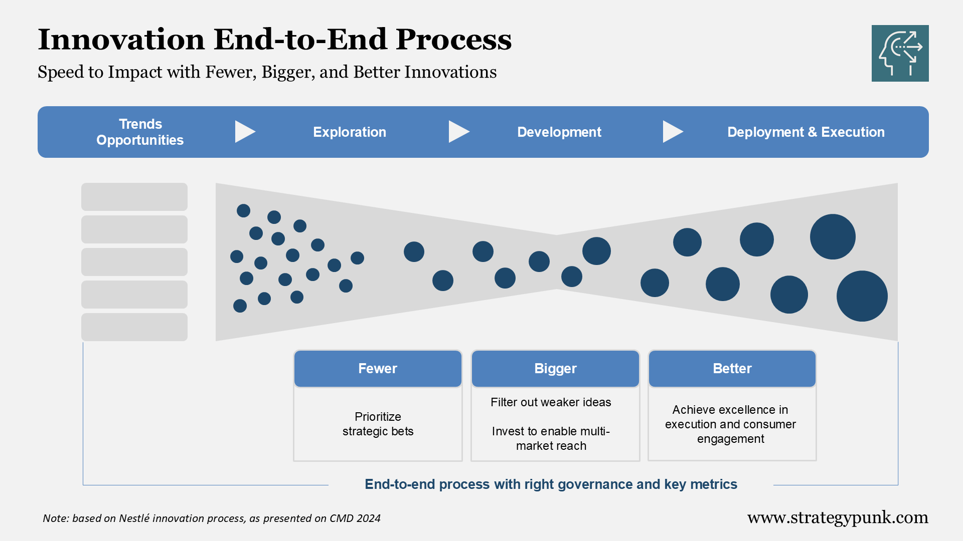 A breakdown of Nestlé's philosophy of focusing resources on fewer, higher-impact innovation bets. Free PDF & PPT. → Use this when your innovation pipeline is bloated and underperforming, and you need to prioritize ruthlessly.