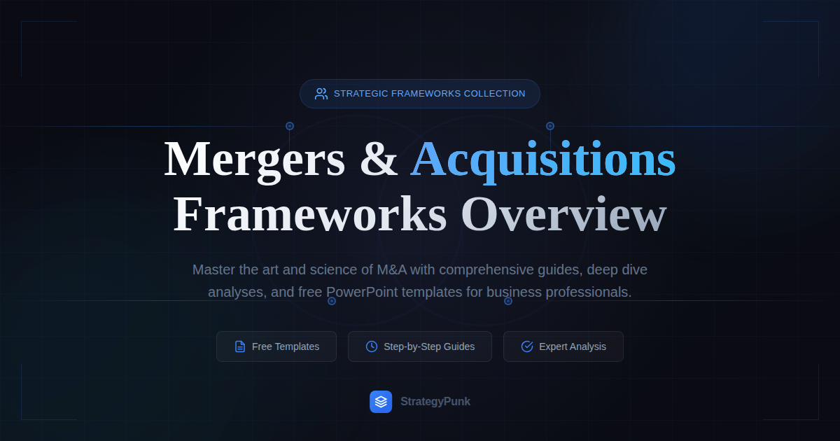 Navigate the complex world of mergers and acquisitions (M&A) with our Mergers & Acquisitions Frameworks. This specialized collection is tailored for business professionals, investors, and consultants who are looking to master the art and science of M&A. Each framework within this category is accompanied by a comprehensive guide, a deep dive analysis, and a free PowerPoint template, ensuring a well-rounded understanding and practical application.