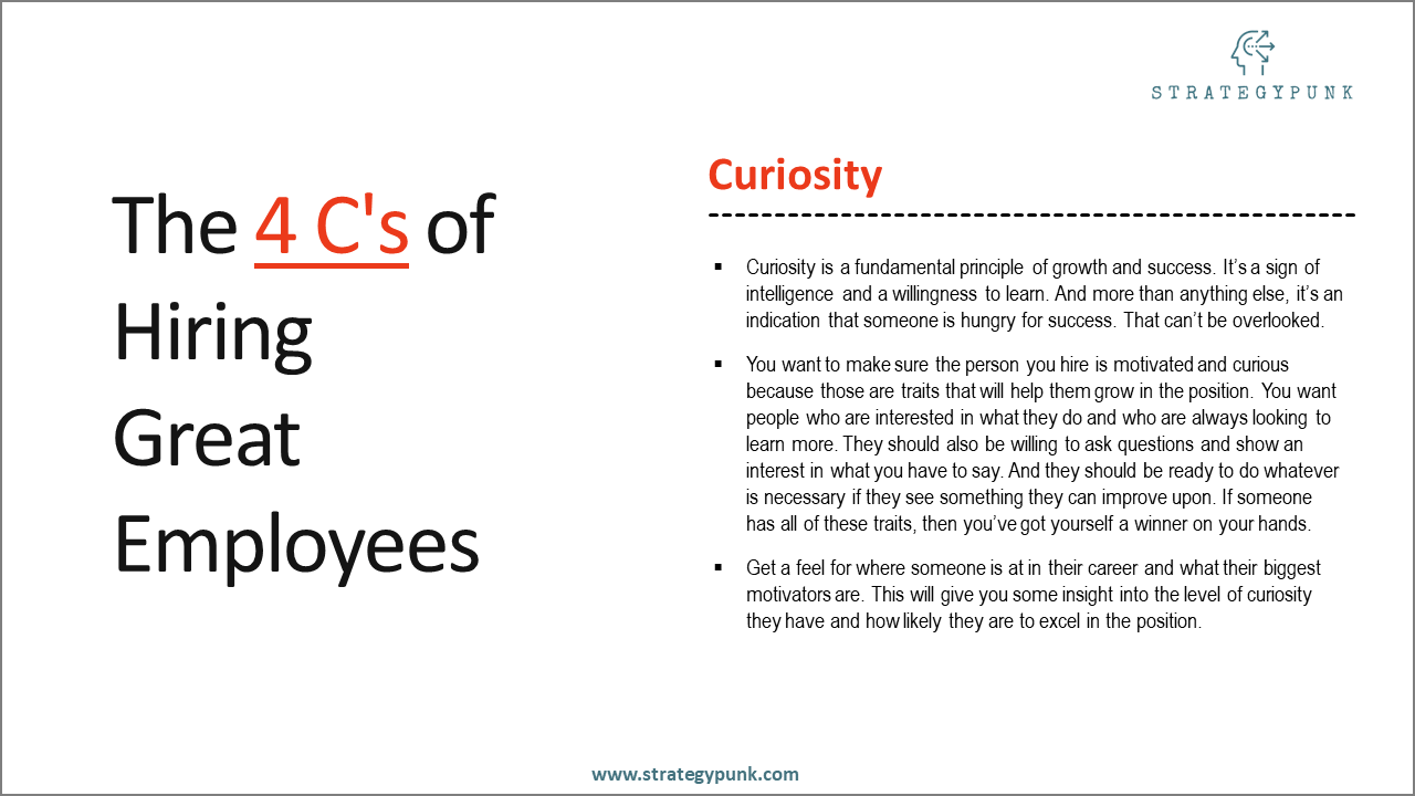 Curiosity is a fundamental principle of growth and success. It’s a sign of intelligence and a willingness to learn. And more than anything else, it indicates that someone is hungry for success. That can’t be overlooked.