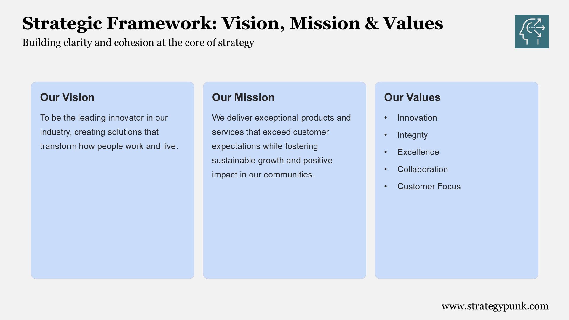 The Strategic Trinity: Why Your Vision, Mission, and Values Need to Work as One System (Free PPT Template)