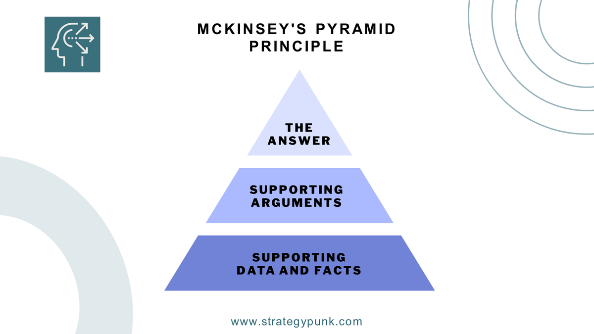 The McKinsey Pyramid Principle is pivotal in structuring arguments, making data understandable, and driving informed decisions in fast-paced business environments. Using a top-down approach this methodology ensures concise, logical, and impactful presentations.