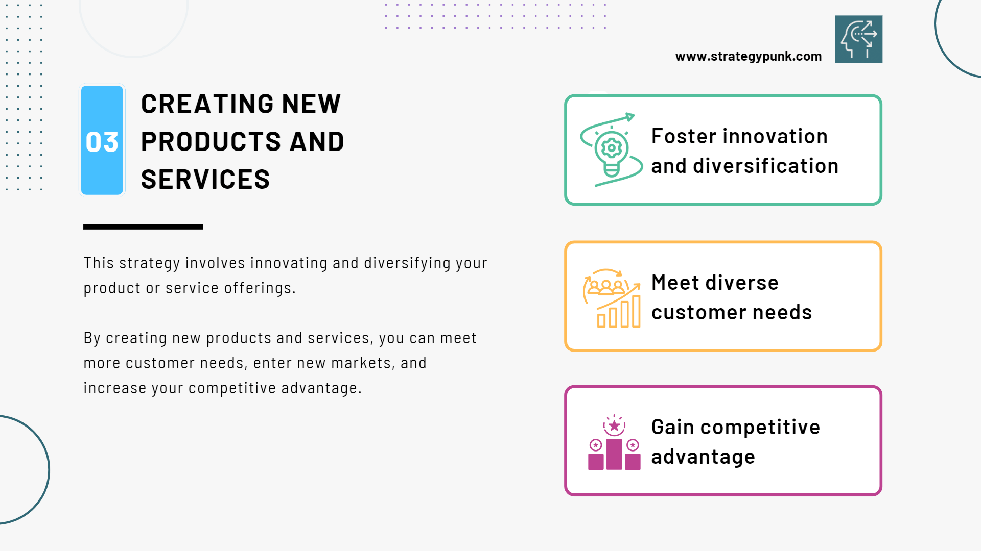 It's all about utilizing the full spectrum of possibilities—from selling more to existing customers to attracting new ones, diversifying your offerings, revamping your value delivery, geographical expansion, restructuring the industry, and entering new competitive arenas.