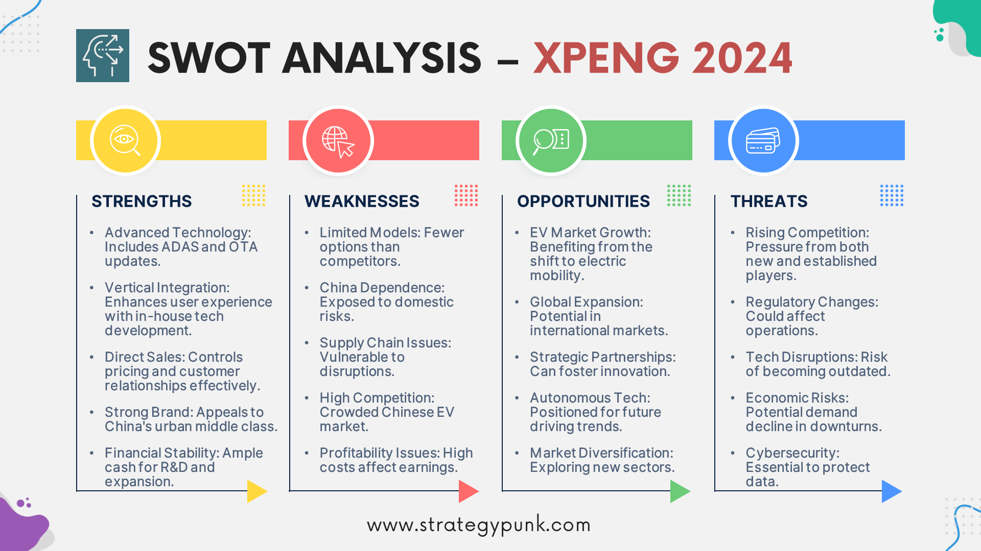 To better understand Xpeng's position and prospects, let's dive into a comprehensive SWOT (Strengths, Weaknesses, Opportunities, Threats) analysis for 2024.